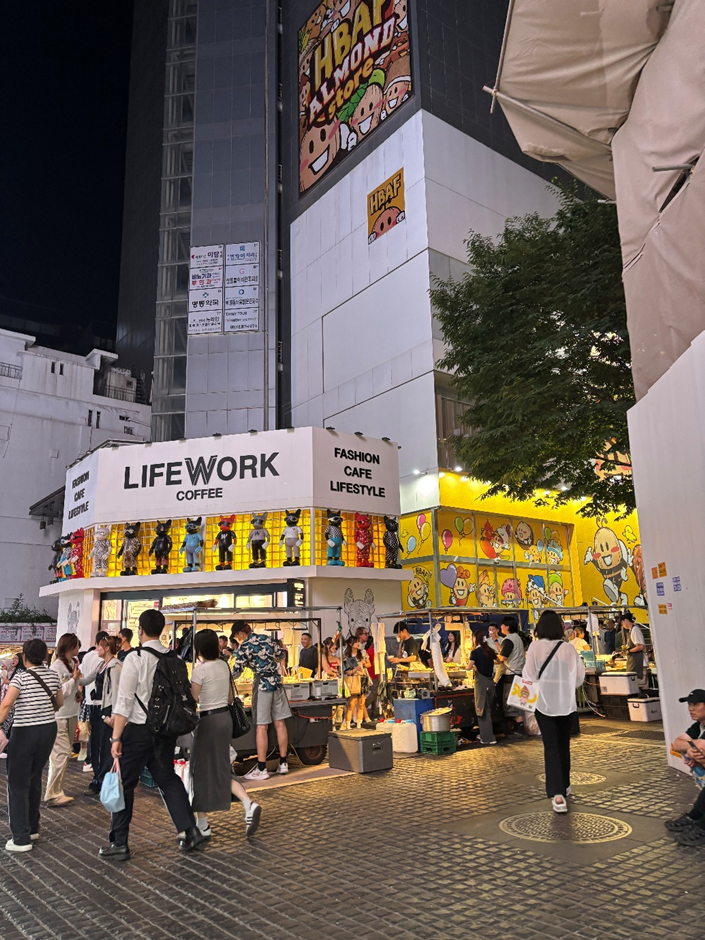Walking downhill from the cathedral, I suddenly emerged into Myeongdong’s main street. After the tranquil walk, I was ready to soak in the area’s vibrant energy—street food stalls, the latest fashion trends, and a lively crowd at every turn.